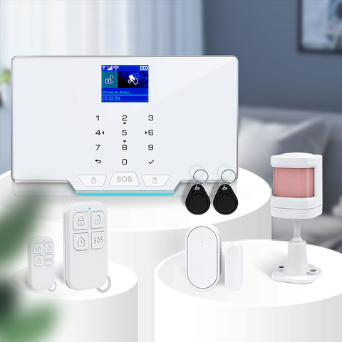 LCD ekran çoklu dil kablosuz Tuya Wifi 4G GSM akıllı ev güvenlik Alarm sistemi Alexa Google ev 100 kablosuz bölgeleri ile